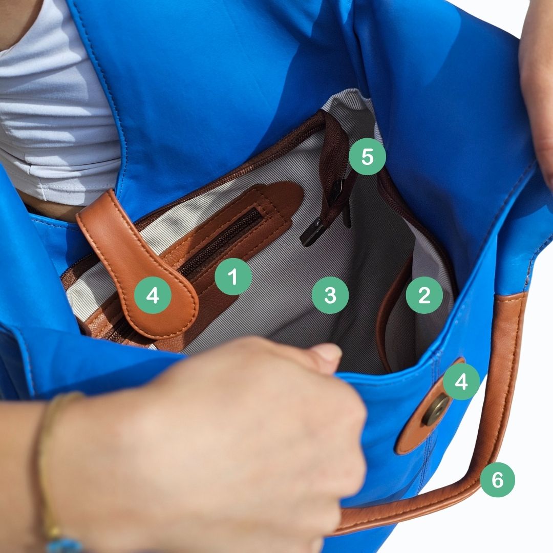 Leather is naturally water-resistant to some extent, but prolonged exposure to water can damage it. We recommend keeping your bag dry and using a leather protector for extra care.
