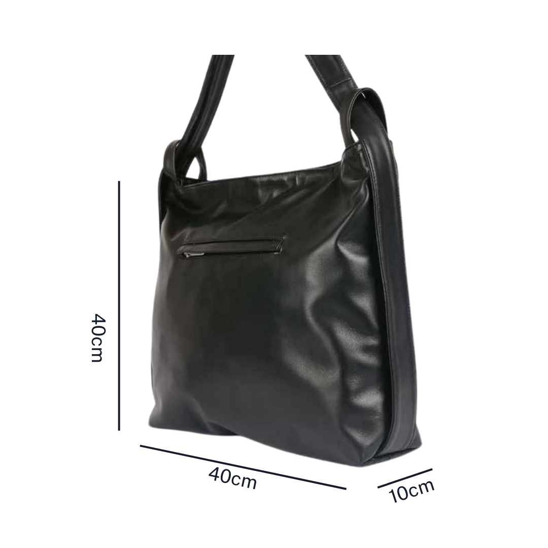 Introducing the Shoulder Bag crafted from premium, Eco-conscious lambskin leather. With its spacious interior and adjustable strap, it seamlessly combines functionality with style. Complete with an extra zippered pocket at the back and available in a variety of colors, it's the perfect accessory for any occasion. Simply pull the straps from the sides, and it transforms into a stylish backpack, making it a versatile and luxurious addition to your collection. Elevate your look with this multi-functional bag, made from sustainably sourced materials to reflect a commitment to Natural craftsmanship and Sustainable fashion.