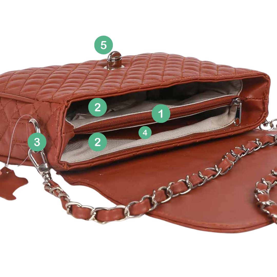 Elevate your style with our exquisite shoulder bag, meticulously crafted from soft, Eco-conscious lambskin leather, featuring a chic diamond pattern. The leather strap, intricately woven through metal rings, adds a touch of sophistication to its design. Compact yet spacious enough for your essentials, this bag effortlessly transitions from day to night, ensuring you make a statement wherever you go while reflecting a commitment to Natural materials and Sustainable craftsmanship.