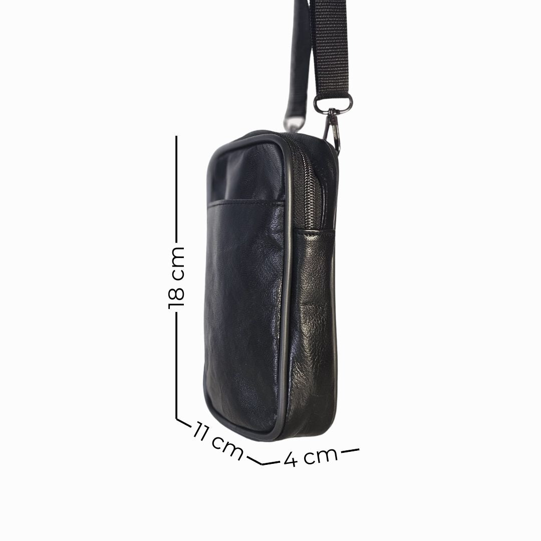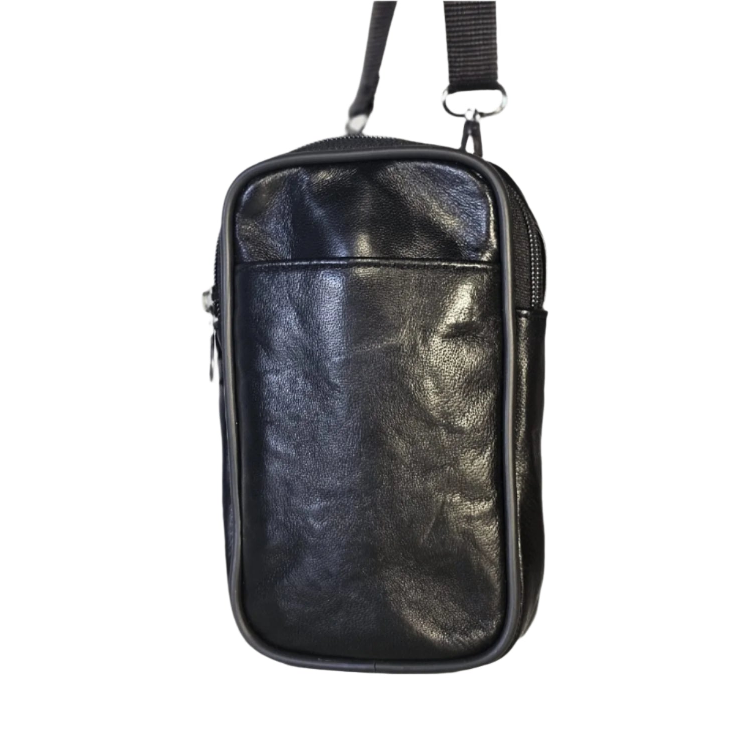 Introducing our Eco-Friendly Leather Phone Bag, designed for practicality and durability. Handcrafted from Natural Genuine Leather, this zip-top bag offers a robust and timeless design while reflecting our commitment to reducing Environmental impact. It features a secure zippered back compartment and a convenient open front pocket for quick access to your essentials. Enjoy the blend of functionality with this practical accessory.